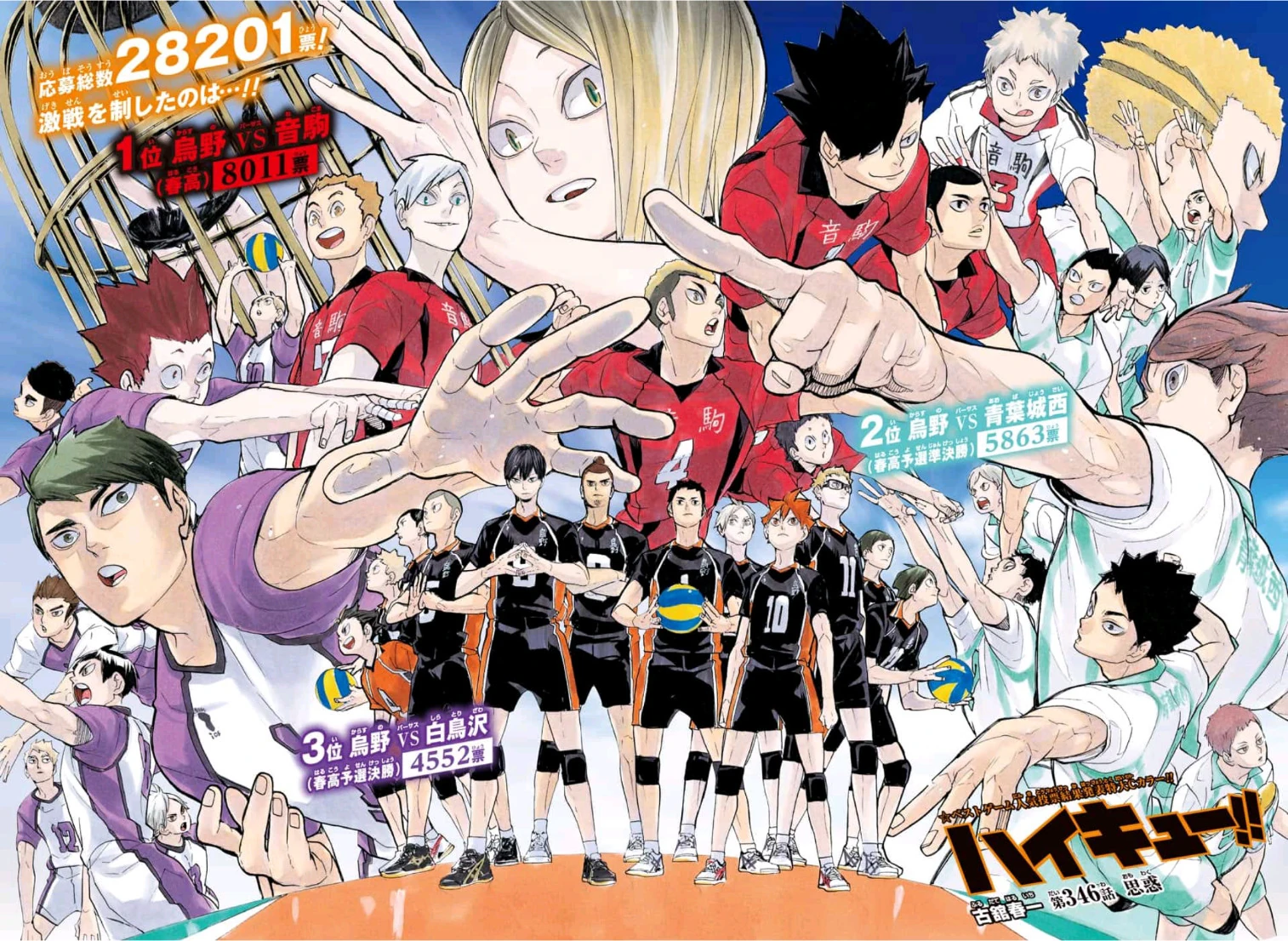 Weekly Shōnen Jump sprawdził popularność postaci serii Haikyū!! Wyniki ukazały się w rozdziale 57. Razem oddano ponad 26.370 tysięcy głosów.