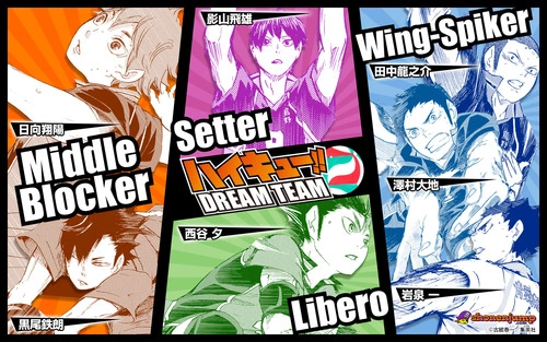W ramach kampanii reklamowej Haikyū w Jumpie, w magazynie przygotowano sondaż, w którym każdy mógł zagłosować na swoją „drużynę marzeń”. Głosujący mogli wybrać 2 z 27 skrzydłowych (atakujących i przyjmujących), 1 z 10 rozgrywających, 2 z 19 środkowych, oraz 1 z 9 libero. Do 2. czerwca oddano 6 586 głosów.[2]