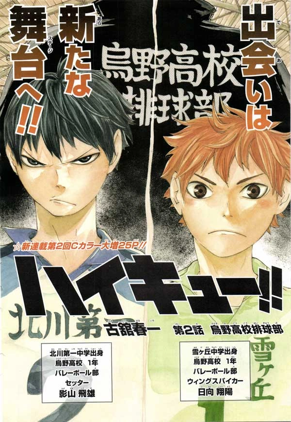 Волейбольный клуб Старшей школы Карасуно (яп. 烏野高校排球部 Karasuno Kōkō Haikyū Bu) — вторая глава серии Haikyuu!!, написанная и иллюстрированная Харуити Фурудате. Опубликована в 13 выпуске Weekly Shonen Jump 2012 года.