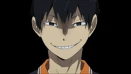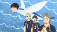 Кагеяма наблюдает за Оикавой, тренирующем подачу в прыжке