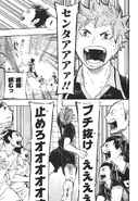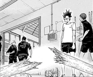 After Hinata and Kageyama start arguing with each other and refuse to listen to Daichi, he gets angry and kicks them out of the gym.