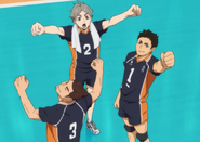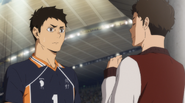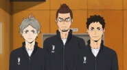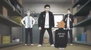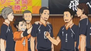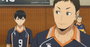Sugawara tells Coach Ukai to choose Kageyama as the official setter because the team will be able to win easily with him. Daichi and Asahi eavesdrop on the conversation sadly before declaring that they will win as much as they can