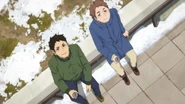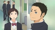 The rest of Karasuno leave Daichi alone so he can catch up with Ikejiri