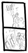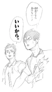 A sketch of Daichi holding Hinata and Tanaka in his hands. It's a reference to his ability to rile up his team members