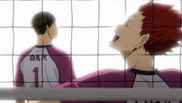 Oikawa suddenly shows up for the practice match. He is revealed to be Aoba Johsai's captain and official setter. He is also Kageyama's senpai from middle school. Oikawa enters the game and immediately targets his perfect serves at Tsukishima who can't receive them properly; this allows Aoba Johsai to catch up to Karasuno. It isn't until Daichi changes their formation that Karasuno is finally able to win the match against Aoba Johsai. However, Oikawa says that when they next meet, Aoba Johsai will be using all of its aces from the start, and a very different result will be expected. As they leave, Daichi reveals that Karasuno also has a few surprises. Their libero, Yū Nishinoya, is about to return and completely change Karasuno's dynamics as a team.