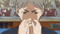 Karasuno recognises that Kyōtani is a double-edged sword in the match: he makes just as many mistakes as he does attacks, and if Aoba Johsai does not use him successfully, his presence in the game can backfire their intentions to increase their offensive power. Sugawara is subbed into the game to help Karasuno gain more points, but is soon switched back out when the formation changes. Coach Ukai considers bringing Yamaguchi in as a pinch server to win the second set from Aoba Johsai.