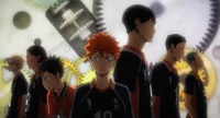 Hinata is inspired by the Small Giant playing volleyball on TV. Three years later, Hinata goes to his first ever volleyball tournament and his team is paired against Kitagawa Daiichi, the school of Kageyama Tobio, also known as the King of the Court. Their match against each other leaves them both interested in their skills and sparks a rivalry. However, they meet again the next year, but this time as team mates in their new high school–Karasuno.