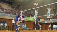 After Hinata and Kageyama finish their supplementary exam, Saeko Tanaka takes them to join Karasuno team at Tokyo training camp. Now they're on the team, Karasuno wins their first match on the day; however Eikichi from Shinzen High manages to touch on Hinata's quicks. Later on, Hinata meets the half Russian player from Nekoma Lev Haiba; Lev promises him that he will be the first one to stop his quick.
