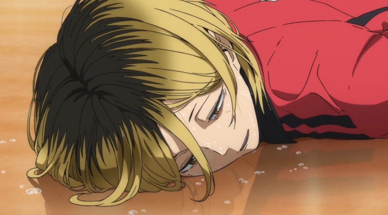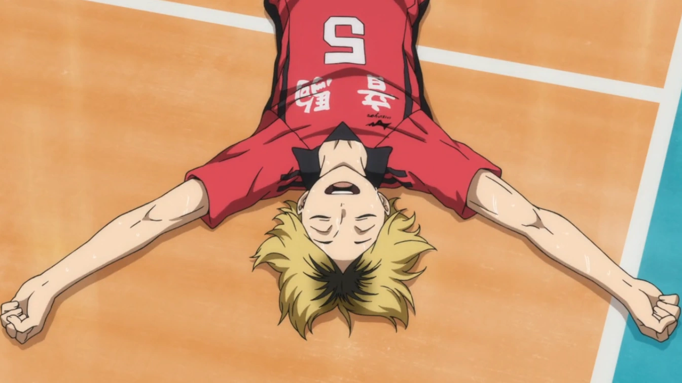 As Kenma and Lev try to block, Lev accidentally bumps into Kenma and knocks him over. However, Kenma snaps at Lev to keep the ball going. After Kenma saves the ball, he feels the exhaustion of the match weigh on him and how painful it is just to breath but finds this is the most fun he's had in a long time and doesn't want it to end.