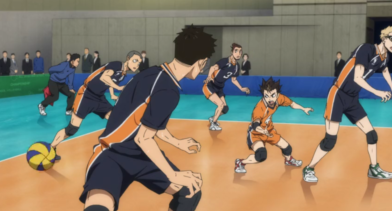 - Manga: When Tsukishima is moving onto the court, Suguru comments how he is uneased at the first-years presence. This is also when Nekoma first performs the synchronized attack.