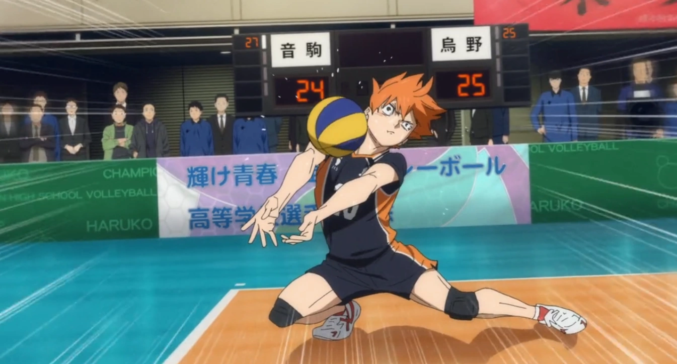 - Manga: Right before the second set starts, Karasuno realizes Hinata is being targeted and made to receive.