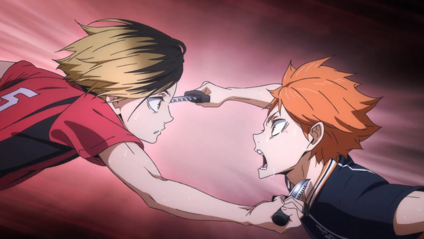 Anime: A slightly altered version of Kenma and Hinata meeting for the first time is shown.