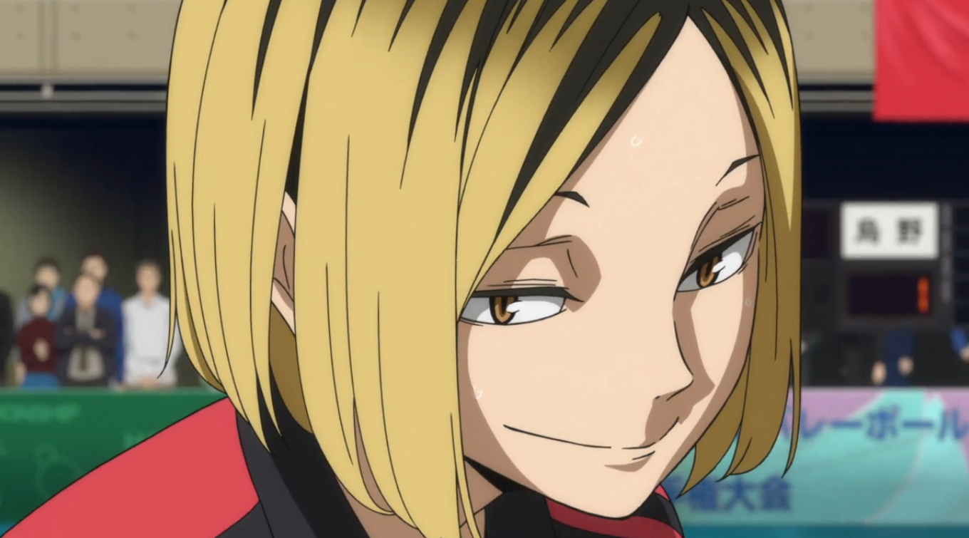 A voice behind them suggests a solution of lowering the net for those who want to better improve their abilities in something they find enjoyable, the man being Coach Nekomata. His words had an impact on Kuroo, as he was then seen joining others in spiking practice. He naturally had trouble perfecting the timing and form to spike but quickly improved until he got a spike over the net. Since that moment, Kuroo began to shed his shy nature and became more involved with volleyball, even repeatedly inviting Kenma to play and watch recordings of matches. Seeing Kenma become excited at witnessing a professional player use the glance feint, Kuroo suggests Kenma join his team as a setter. He tells Kenma that setters do not move around much and are masters of strategy; Kenma quickly learned the minimal movement part was exaggerated.