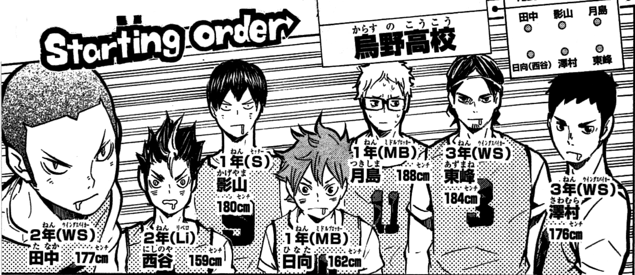 While most schools usually reserve the number 4 for the team ace, Karasuno does not seem to have certain numbers reserved for the ace as both Asahi Azumane and Tenma Udai were aces but wore different numbers. Karasuno instead seems to be a school that gives the number 4 to the libero. However, in the opening scene of Hinata watching Karasuno at nationals, the libero can be seen wearing the number 2.