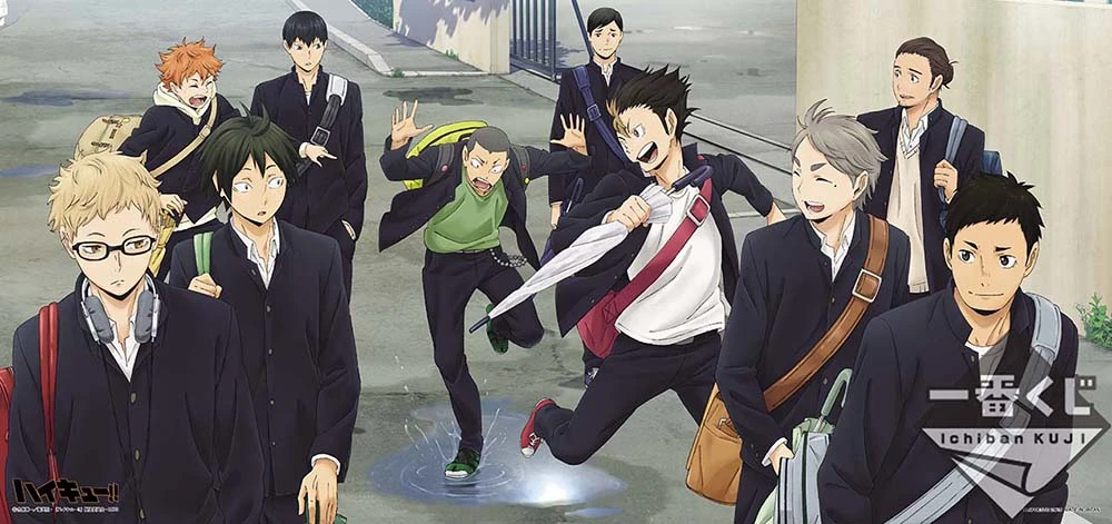 Karasuno, like most Japanese schools, has a dress code which includes wearing a uniform. The male uniform consists of the classic black gakuran, white collared shirt, cream sweater and black pants. The women have a different uniform, which consists of a white blouse, red ribbon, cream sweater, black blazer, and a grey skirt[1]. However, since many students are often seen without the cream sweater and wearing t-shirts instead of the collared shirt, it is assumed that the dress code isn't strictly enforced.