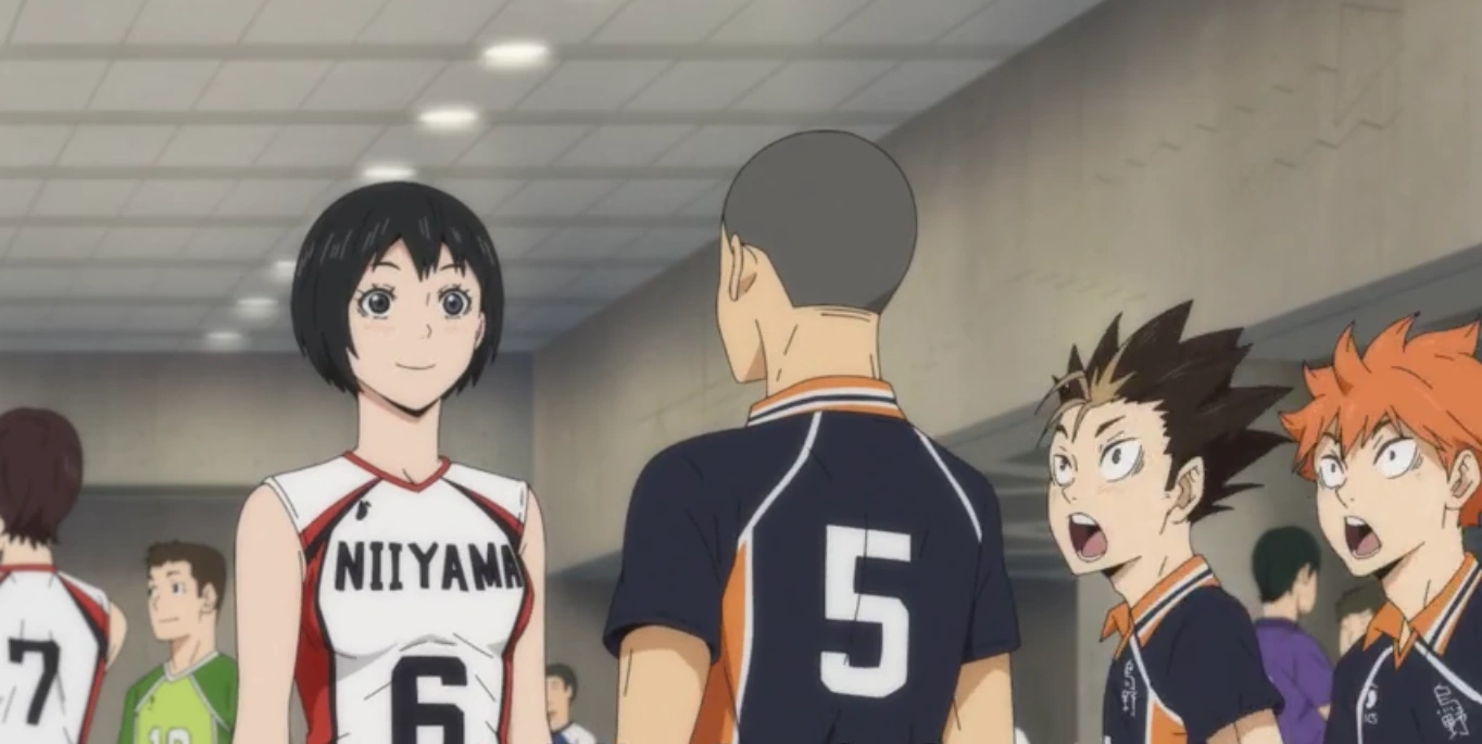 Kanoka Amanai: The two have known each other since primary school, where Tanaka would often chase away people who mocked her for her height and turned this into something she could be proud of when he introduced her to volleyball. Tanaka continued to be a supportive figure to Kanoka during this time when she was struggling with making things work as well as praising her when her natural height proved to make her an incredible blocker. Although it appears like they lost contact after she moved away, the two picked up their friendship like normal when they reunited at the Spring Tournament although Tanaka appeared to be a bit shyer after seeing how much Kanoka had grown. When he believed Kanoka was going to confess her feelings to him, Tanaka turned her down and explained that he already had his heart set on someone else. Despite this, he continues to support her and is shown heavily cheering for her when she began playing in the Olympics.