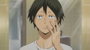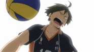 Receiving praise from Tsukishima on how much he practiced his serve