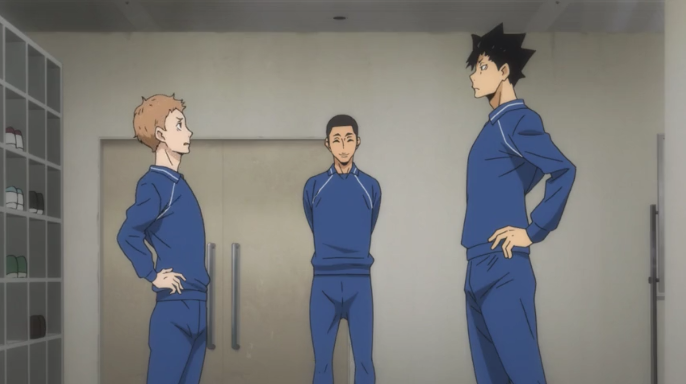 The night before, Kuroo tells Yaku to have more faith in their juniors as he is skeptical about them getting to nationals the next year. Kuroo then explains that although Kenma was reluctant to try the sport when he first tried it, he grew to enjoy it. Hearing this, Yaku doesn't believe his classmate. When Kenma tells Kuroo that he, in fact, has feelings, Kuroo sarcastically refuses to believe him. After Kenma leaves, the third-years continue their discussion about him nevertheless and Kuroo confirms his teammates talking about Kenma's rise in determination after meeting Hinata. After this, Kuroo and Yaku get into a short squabble.