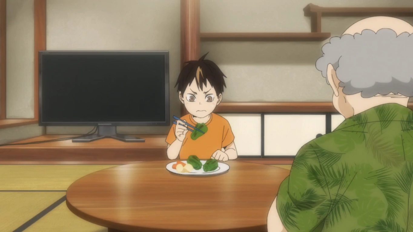 Mineo Nishinoya: Nishinoya appears to have a close relationship with his grandfather. Since he was young, Nishinoya had strict but helpful guidance from his grandfather that allowed him to overcome several fears he had. One thing Nishinoya remembers being taught by Mineo was that he shouldn't be afraid to try new things, or that he should ask others for help if he wasn't sure what to do. The two appear to enjoy playing hanetsuki together, although Nishinoya appears to be beaten most of the time.